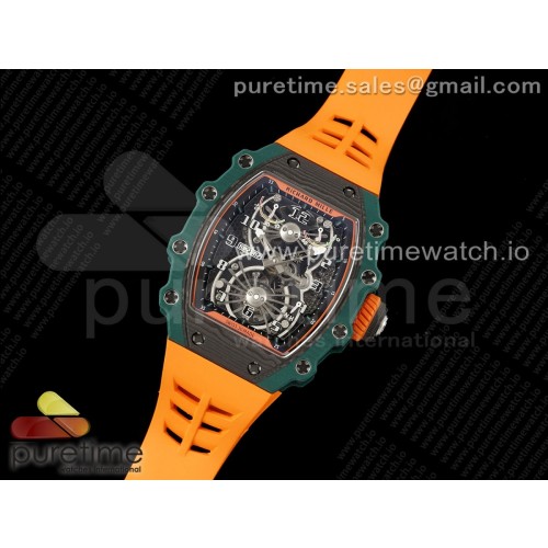RM공장 리차드밀 RM21-02 투어빌론 그린케이스 블랙세라믹 스켈레톤다이얼 오렌지러버스트랩 RM21-02 Tourbillon NTPT RMF Best Edition Skeleton Dial on Orange Rubber Strap