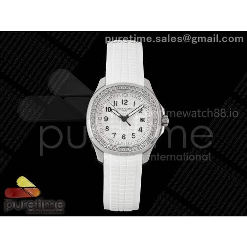 PP공장 파텍필립 아쿠아넛 5267 화이트다이얼 다이아몬드베젤 화이트러버스트랩 Aquanaut 5267 SS PPF 1:1 Best Edition White Textured Dial on White Rubber Strap Ronda Quartz > 파텍필립