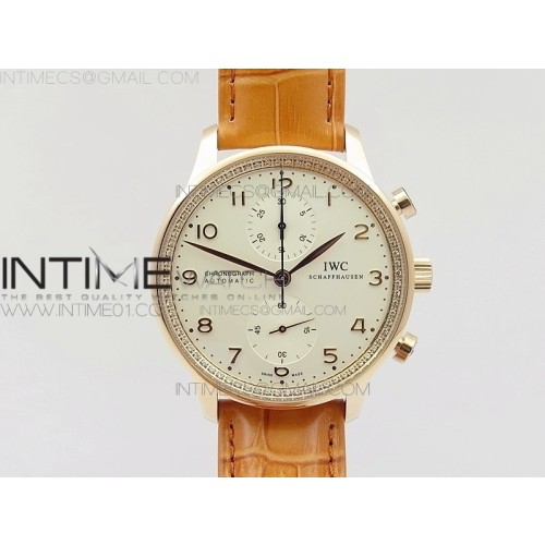 • ZF공장 IWC 포르투기저 크로노그래프 PORTUGUESE IW3714 RG DIAMOND WHITE DIAL RG NUMERAL ON HONEY BROWN LEATHER STRAP A79350 (SLIM MOVEMENT)