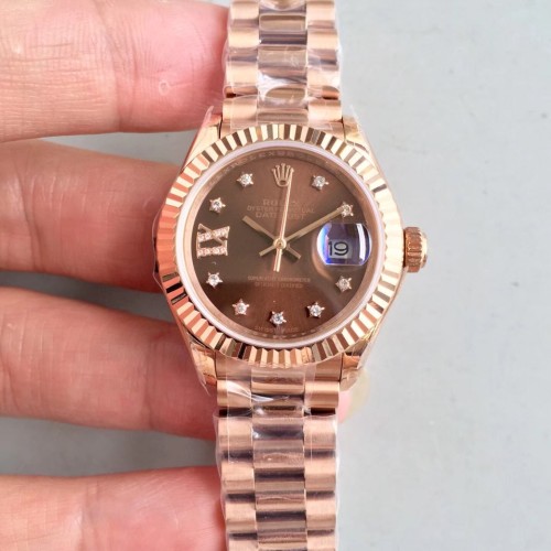 SY공장 롤렉스 레이디 데이저스트28 로즈골드금장 브라운다이얼 다이아인덱스 프레지던트브레이슬릿