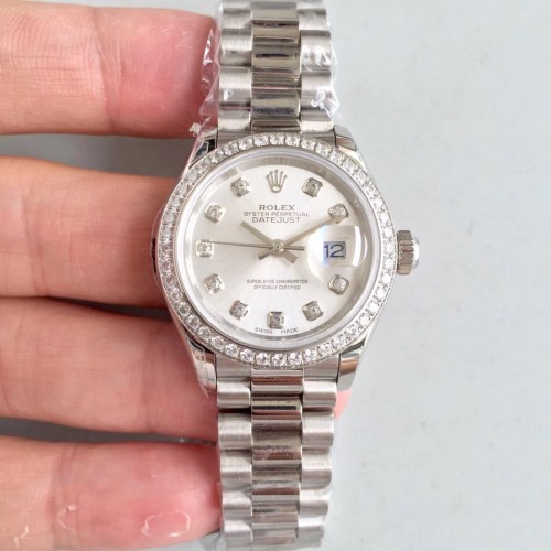 SY공장 롤렉스 레이디 데이저스트28 스틸 다이아베젤 실버다이얼 다이아인덱스 프레지던트브레이슬릿
