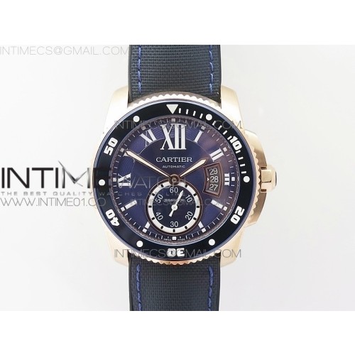 TF공장 칼리브 드 까르띠에 다이버 로즈골드금통 블루다이얼 러버스트랩 CALIBRE DE CARTIER DIVER RG BLUE DIAL ON NYLON BLACK RUBBER STRAP 23J MOVEMENT