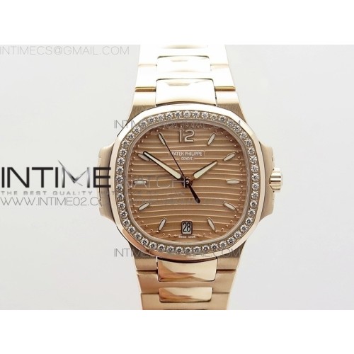 PF공장 파텍필립 노틸러스점보 레이디 7118 로즈골드금통 다이아몬드베젤 로즈골드다이얼 NAUTILUS JUMBO LADIES 7118 RG TEXTURED DIAL DIAMOND BEZEL ON RG BRACELET A324 CLONE > 파텍필립