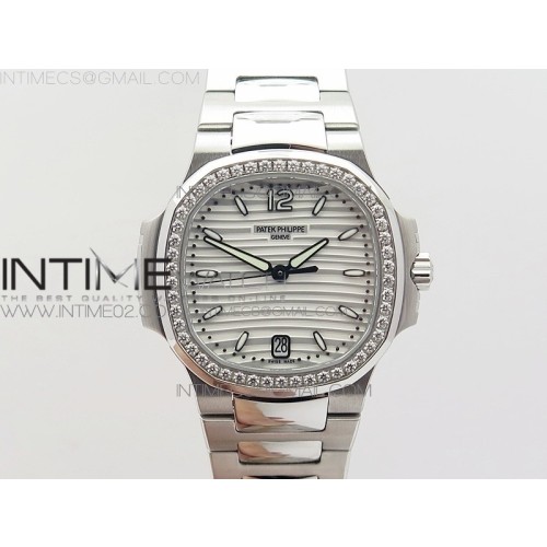 PF공장 파텍필립 노틸러스점보 레이디 7118 스틸 다이아몬드베젤 화이트다이얼 NAUTILUS JUMBO LADIES 7118 WHITE TEXTURED DIAL DIAMONDS BEZEL ON SS BRACELET A324 CLONE
