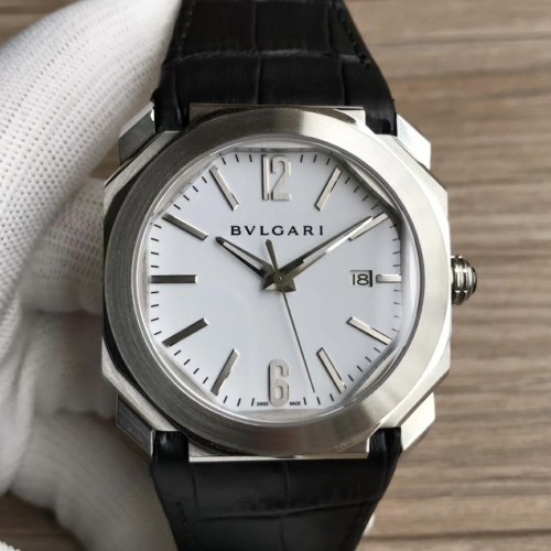 JL공장 불가리 옥토 스틸 화이트다이얼 가죽스트랩