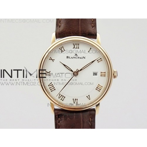 • ZF공장 블랑팡 빌레레 6651 로즈골드금통 화이트다이얼 로만인덱스 가죽스트랩 VILLERET 6651 RG WHITE DIAL ON BROWN LEATHER STRAP A1151