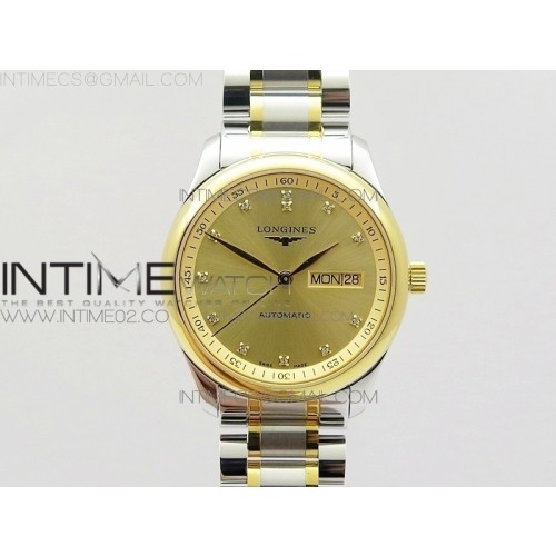 LG공장 론진 마스터 데이데이트 옐로우골드콤비 샴페인다이얼 다이아몬드인덱스 브레이슬릿 MASTER COLLECTION SS/YG GOLD DIAL ON SS BRACELET A2836