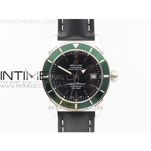 브라이틀링 슈퍼오션 스틸 블랙다이얼 그린인서트 가죽스트랩 SUPEROCEAN 42MM A17321 SS CREAM DIAL GREEN BEZEL ON BLACK LEATHER STRAP ETA2824 > 브라이틀링