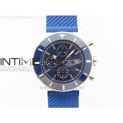 브라이틀링 슈퍼오션 헤리티지 크로노그래프 스틸 블루베젤 블루다이얼 러버스트랩 SUPER OCEAN HERITAGE BLUE CERAMIC BEZEL SS BLUE DIAL ON BLACK RUBBER STRAP A7750