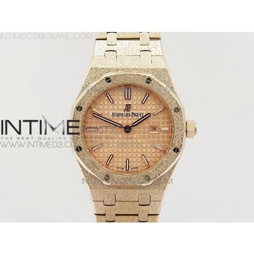 OM공장 오데마피게 로얄오크 레이디 15000 프로스티드로즈골드 오렌지다이얼 브레이슬릿 ROYAL OAK 33MM 15000 SATIN-POLISHED RG GOLD DIAL ON SS BRACELET QUARTZ