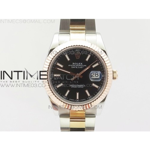 GM공장 롤렉스 데이저스트 41 로즈골드 포금콤비 플루티드베젤 블랙 텐포인트다이얼 오이스터브레이슬릿 DATEJUST 41MM 126303 RG WRAPPED BLACK DIAL DIAMONDS MARKERS ON SS/RG OYSTER BRACELET A2824
