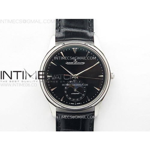 ZF공장 예거르쿨트르 마스터 울트라씬 문페이즈 스틸 블랙다이얼 Master Ultra Thin Moon 1368420 SS Black Dial on Black Leather Strap V3 SA925 Super Clone