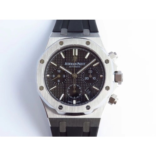 오데마피게 로얄오크 크로노그래프 스틸 블랙다이얼 러버스트랩