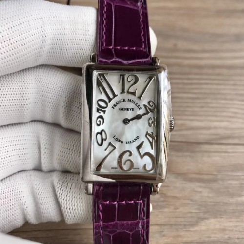프랭크뮬러 롱아일랜드 스틸 화이트자개다이얼 실버양각인덱스 퍼플엘리스트랩