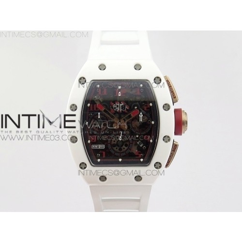 KU공장 리차드밀 RM011 크로노그래프 로즈골드금장케이스 화이트세라믹베젤 스켈레톤다이얼 화이트러버스트랩 RM011 RG CASE CHRONOGRAPH WHITE CERAMIC BEZEL SKELETON DIAL ON WHITE RUBBER STRAP A7750 KV공장