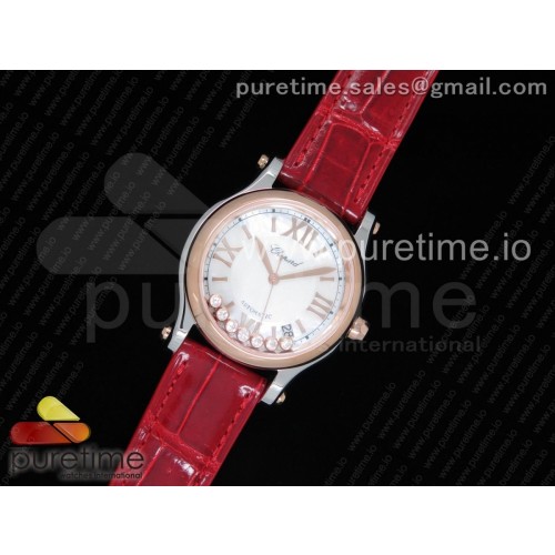 OX공장 쇼파드 해피스포츠 로즈골드콤비 화이트다이얼 레드가죽스트랩 Happy Sport Automatic SS/RG 36mmWhite Dial on Red Leather Strap A2892