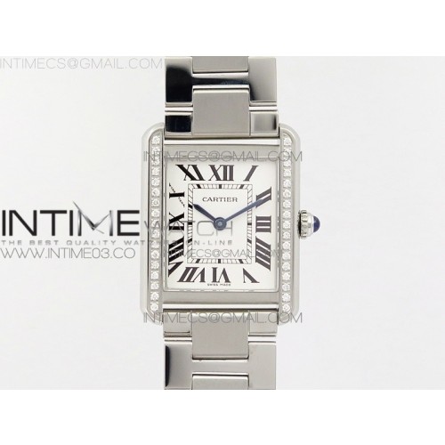 K11공장 24mm 까르띠에 탱크솔로 스틸 다이아몬드베젤 브레이슬릿 TANK SOLO LADIES 24MM SS DIAMOND BEZEL WHITE DIAL ON SS BRACELET RONDA QUARTZ