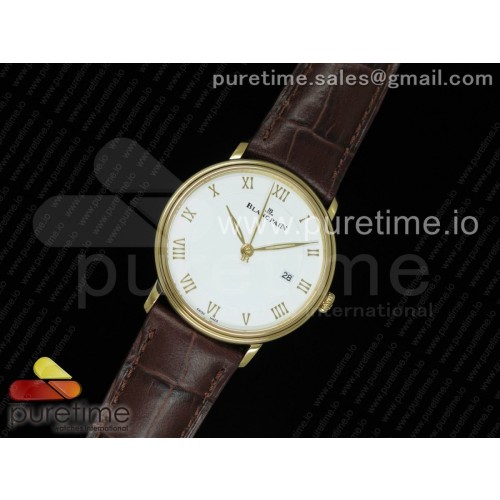 ZF공장 블랑팡 빌레레 6651 옐로우골드 화이트다이얼 로만인덱스 가죽스트랩 Villeret 6651 YG White Dial on Brown Leather Strap A1151