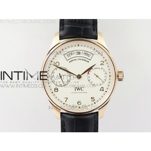 ZF공장 IWC 포르투기저 애뉴얼캘린더 파워리저브 골드케이스 골드핸즈 화이트다이얼 가죽스트랩 IWC PORTUGUESE REAL PR REAL ANNUAL CALENDAR IW503501 RG WHITE DIAL ON BROWN LEATHER STRAP A52850