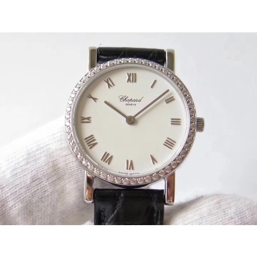 MG공장 쇼파드 클래식 스틸 화이트다이얼 다이아베젤 블랙악어스트랩 > 쇼파드