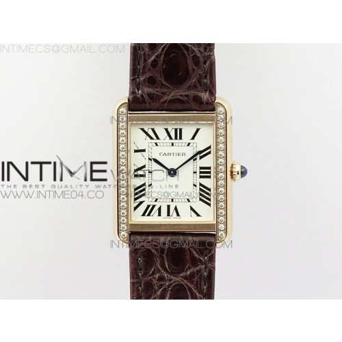 AF공장 까르띠에 탱크솔로 24 스몰 다이아베젤 로즈골드금장 화이트다이얼 가죽스트랩 TANK SOLO LADIES 24MM DIA BEZEL RG WHITE DIAL ON BROWN LEATHER STRAP RONDA QUARTZ