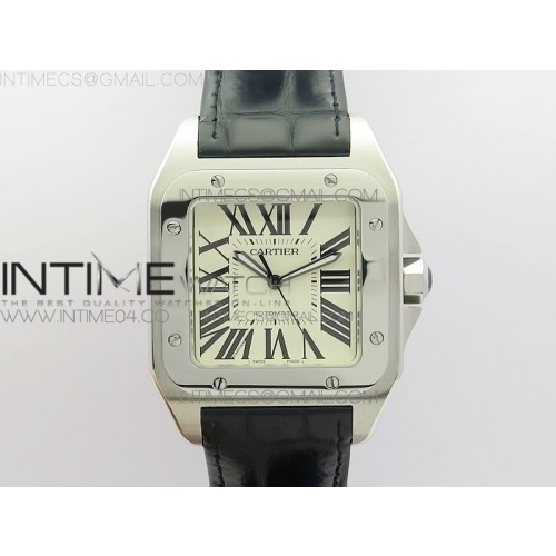 RXW공장 까르띠에 산토스100 38MM 스틸 화이트다이얼 가죽스트랩 SANTOS 100 38MM LADIES SS WHITE DIAL ON BLACK LEATHER STRAP A2892