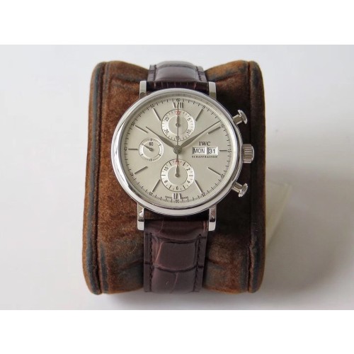 ZF공장 IWC 포르토피노크로노 스틸 화이트다이얼 브라운가죽스트랩 > IWC