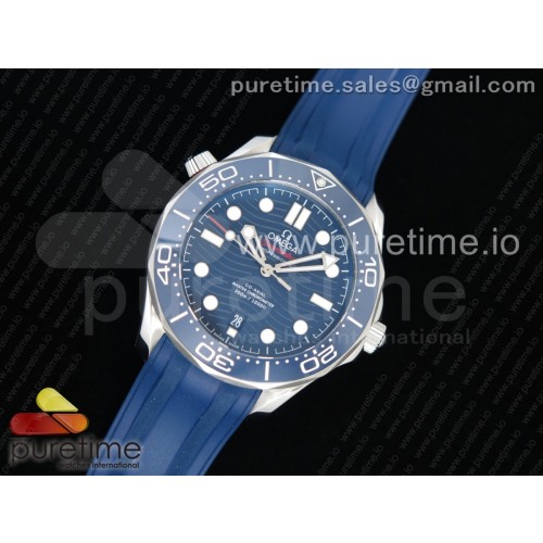 OM공장 오메가 씨마스터 다이버300 스틸 블루물결텍스쳐다이얼 러버 2018 Seamaster Diver 300M Blue Ceramic Blue Dial on Blue Rubber Strap A8800 (Black Balance Wheel)