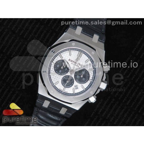 om공장 오데마피게 로얄오크 크로노그래프 블랙앤화이트다이얼 가죽스트랩 Royal Oak Chrono 26331ST SS Black/White Dial on Black Leather Strap A7750 (Free Rubber Strap)