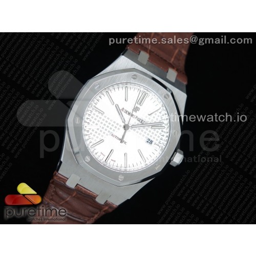 OM공장 오데마피게 로얄오크 15400 화이트다이얼 가죽스트랩 Royal Oak 41mm 15400 SS White Textured Dial on Brown Leather Strap A3120