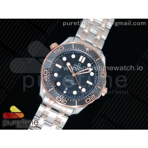 OM공장 오메가 씨마스터 다이버 300M 로즈골드 콤비 블랙물결텍스쳐다이얼 브레이슬릿 2018 Seamaster Diver 300M SS/RG Blue Ceramic Blue Dial on SS/RG Bracelet A8800 (Black Balance Wheel) > 오메가
