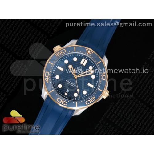 OM공장 오메가 씨마스터 다이버 300M 로즈골드 콤비 블루물결텍스쳐다이얼 러버스트랩 2018 Seamaster Diver 300M SS/RG OMF Best Edition Blue Ceramic Blue Dial on Blue Rubber Strap A8800 (Black Balance Wheel)