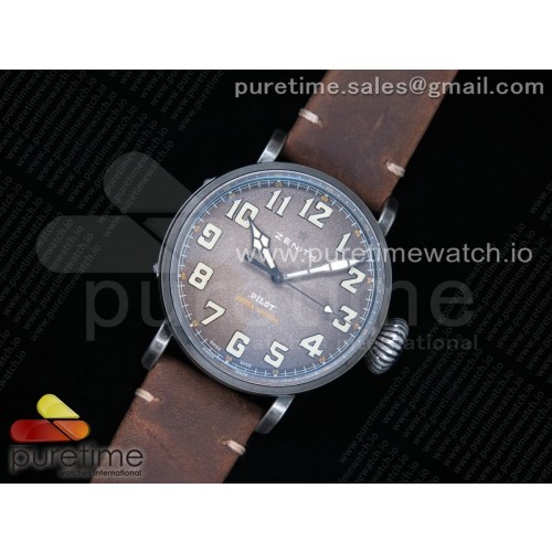 XF공장 45MM 파일럿 타입 20 엑스트라 스페셜 브라운다이얼 아쏘스트랩 Pilot Type 20 Extra Special 45mm Aged SS Case Brown Dial on Assolumate Strap A2824 > 제니스