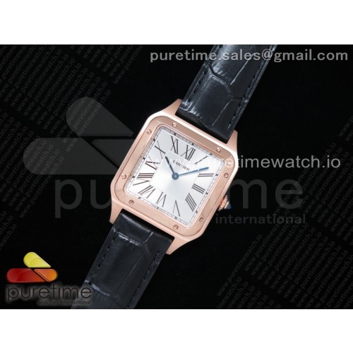 XF공장 까르띠에 산토스 뒤몽 27.5 로즈골드 금통 실버다이얼 가죽스트랩