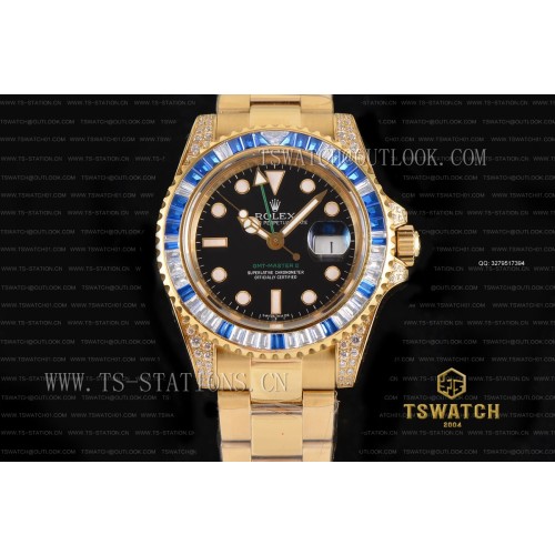 BP공장 롤렉스 GMT마스터2 옐로우골드 금통 바게트다이어 블랙다이얼 브레이슬릿 GMT-Master II 116758 SAru BPF 1:1 Full YG Diamond A2813(Hour Hand Adjust Same Genuine)