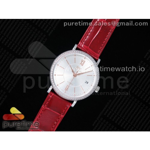 MF공장 포르토피노 37MM 실버다이얼 악어스트랩 Portofino Automatic 37 SS Silver Dial RG Markers on Red Crocodile Strap A35111 > IWC