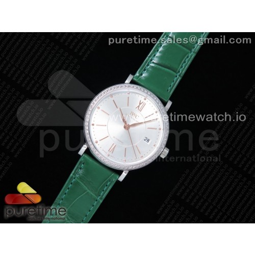 MF공장 포르토피노 37MM 실버다이얼 악어스트랩 Portofino Automatic 37 SS Silver Dial RG Markers on Green Crocodile Strap A35111 > IWC