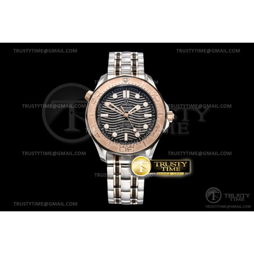 OM공장 오메가 씨마스터 다이버 300M 로즈골드 콤비 블랙물결텍스쳐다이얼 브레이슬릿 Seamaster 300m Diver Tit Tantanlum RG/SS OMF Asia 8806