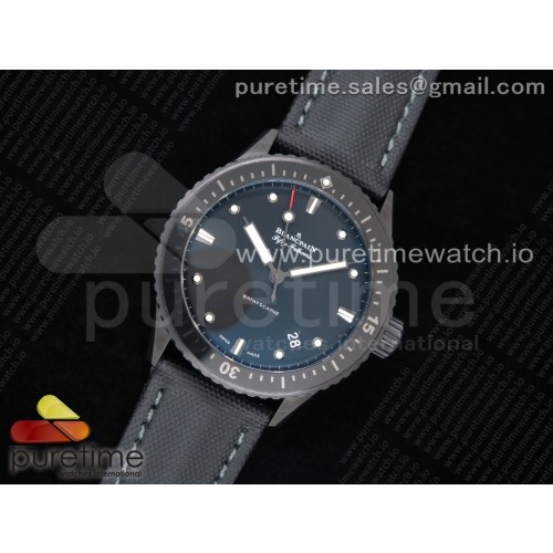 ZF공장 블랑팡 피프티패덤즈 바티스카프 세라믹 블랙다이얼 직물스트랩 Fifty Fathoms Bathyscaphe Black Ceramic Black Dial on Black Sail-Canvas Strap A1315