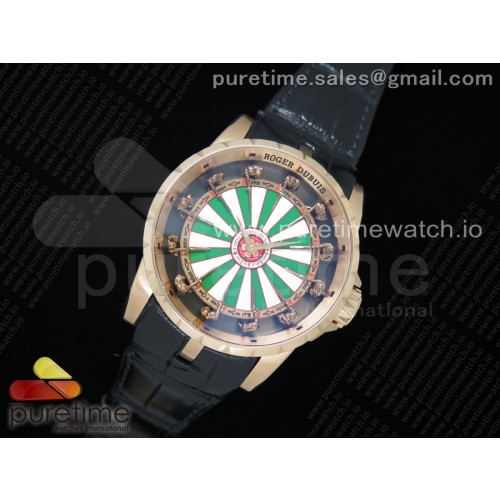 ZF공장 로져드뷔 원탁의기사 로즈골드 금통 룰렛다이얼 가죽스트랩 Excalibur Knights of the Round Table II RG Chessboard Dial on Black Leather Strap MIYOTA 9015