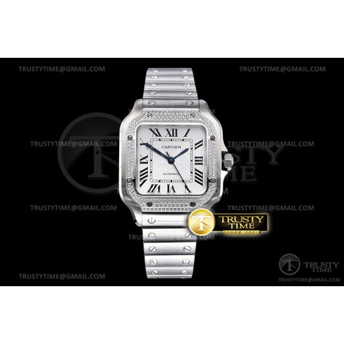 BV공장 까르띠에 산토스 2018 미디움 스틸 화이트다이얼 스마트링크브레이슬릿 Santos De Cartier Ladies 35mm Diams SS/SS BVF MY9039 > 까르띠에
