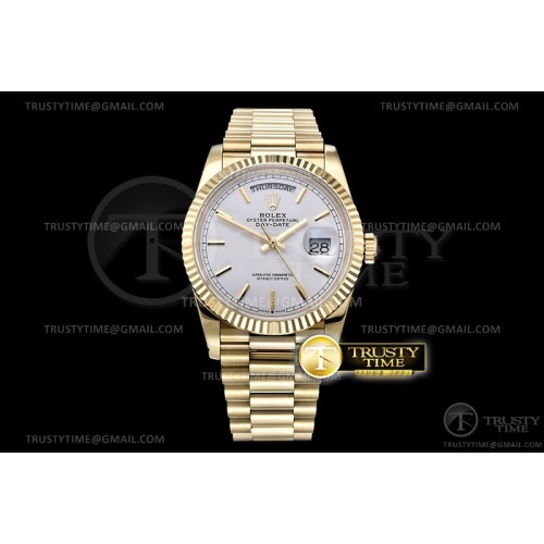 BP공장 롤렉스 데이데이트 36 옐로우골드 금통 그레이다이얼 브레이슬릿 DayDate 36mm Flt Pres YG/YG Grey Stk BP Asia 2836
