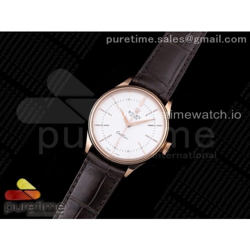 GM공장 롤렉스 셀리니 50505 로골 화이트다이얼 가죽스트랩 Cellini 50505 RG White Dial Stick Markers on Brown Leather Strap SA3132