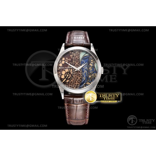 FL공장 칼라트라바 브라운블루 에나멜다이얼 가죽스트랩 Calatrava 5089G SS/LE Brown FLF Asia 23J Mod Cal.240