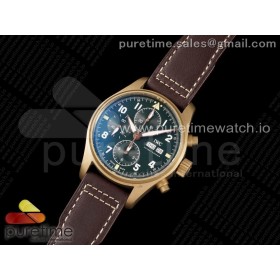 AZ공장 IWC 파일럿 크로노그래프 스핏파이어 브론즈케이스 그린다이얼 가죽스트랩 Pilot Chrono Spitfire IW387902 Bronze AZF 1:1 Best Edition Green Dial on Brown Leather Strap A7750