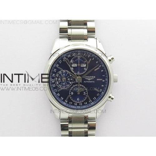 GL공장 마스터 문페이즈 크로노 블루다이얼 Master Moonphase Chronograph SS GLF 1:1 Best Edition Blue Dial on SS Bracelet A7751 > 론진