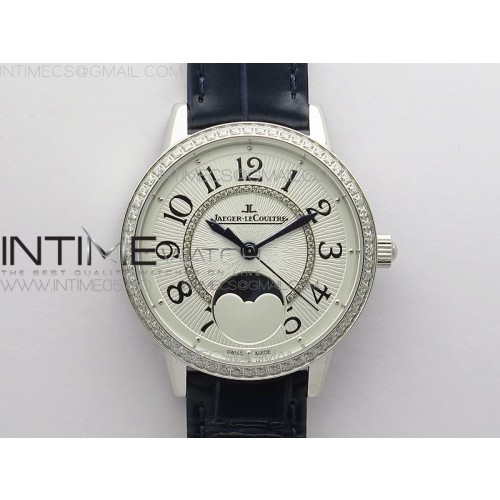 ZF공장 랑데뷰 화이트텍스쳐다이얼 가죽스트랩 Rendez-Vous Night & Day SS ZF 1:1 Best Edition White Textured Dial Diamonds Bezel on Blue Leather Strap A898 > 예거르쿨트르