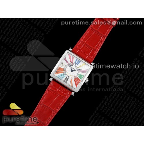 ZF공장 프랭크뮬러 마스터스퀘어 화이트다이얼 가죽스트랩 Master Square SS Ladies ZF 1:1 Best Edition White Colorful Roman Dial on Red Leather Strap Ronda Quartz