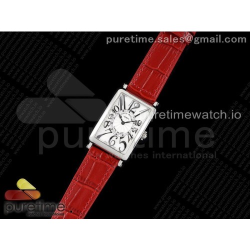 ZF공장 프랭크뮬러 롱아일랜드 화이트다이얼 가죽스트랩 Long Island Ladies SS ZF 1:1 Best Edition on Red Leather Strap Ronda Quartz