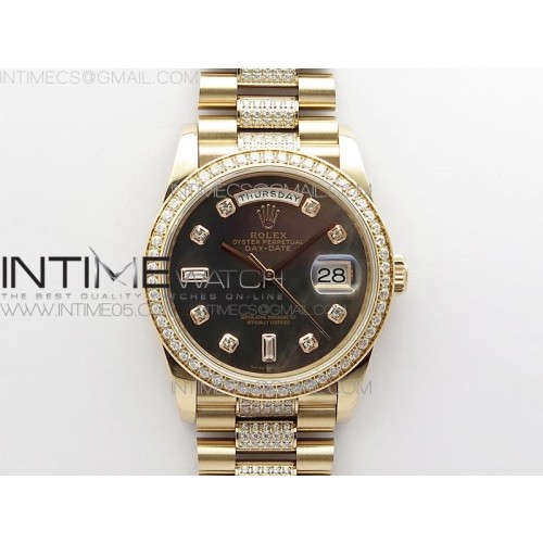 BP공장 롤렉스 데이데이트 36미리 로골 자개다이얼 2836 Day-Date 36 128235 RG/Crystal BP Best Edition Black MOP Crystal Markers Dial on RG President Bracelet A2836